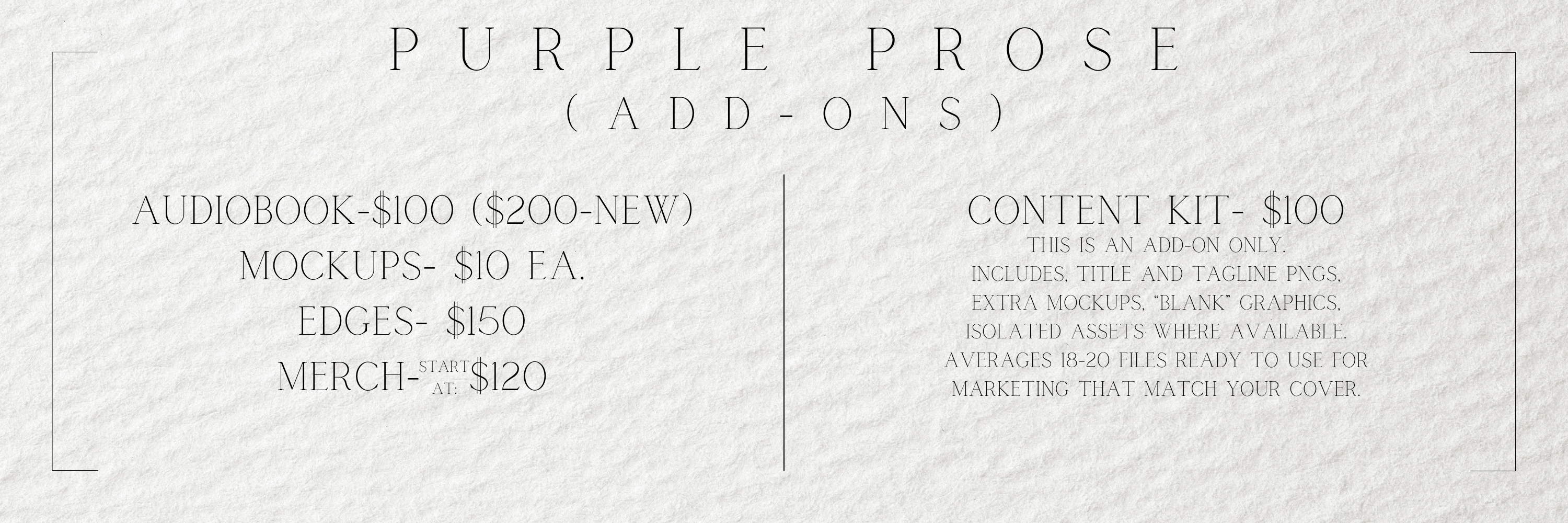 Packages are priced for indie/self-published authors. Publishers and special edition boxes, please email.